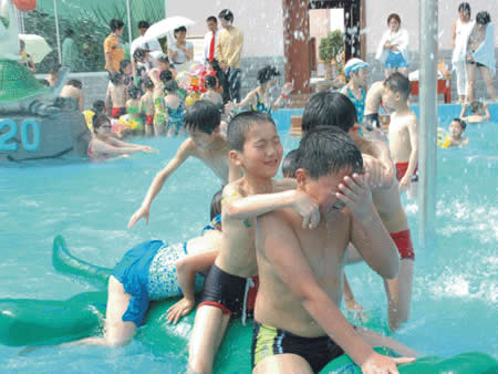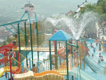 兒童游樂園 卡通噴泉、急速滑梯……這里的童話世界讓您的孩子恍若天使般幸福、快樂!銀鈴般的笑聲,充滿童稚音的歌聲,響徹云霄。美妙的孩童時光從這里開始,五彩斑斕的人生從這里起步。水溫36-38度,專為兒童設(shè)計,設(shè)有水上滑道和花樣繁多的兒童小品:蘑菇噴淋、水槍、浮漂等,讓您的孩子盡情釋放活潑快樂。