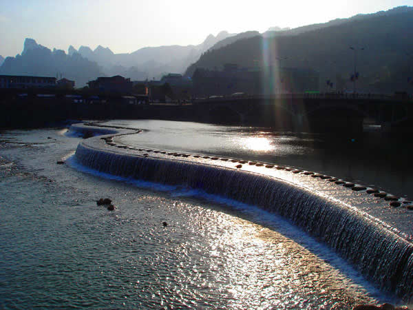 索溪峪的水 索溪峪的景觀,以山水為依托。不僅山奇、水秀,而且橋險(xiǎn)、洞幽。有十里畫廊、西海峰林、百丈峽、寶峰湖、黃龍洞、一線天等游覽點(diǎn)300多個(gè)。