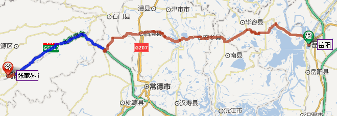 岳陽市到張家界自駕車路線圖