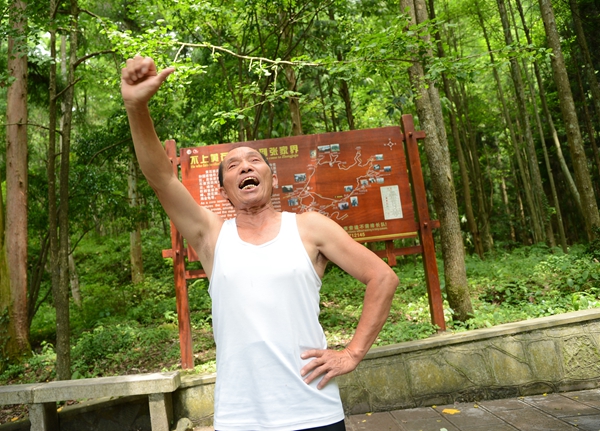 二是老人有個(gè)強(qiáng)健硬朗的身板。十多年前,趙如秋查出患有高血壓和腎結(jié)石,他就堅(jiān)持每天在景區(qū)爬山鍛煉身體,結(jié)果還真的有效,不僅腎結(jié)石消除了,高血壓有所緩解,身體也結(jié)實(shí)得很。如今趙如秋老人雖然68了,但說(shuō)話中氣十足,走路健步如飛,還能挑上150斤擔(dān)子徒步登上鷂子寨、黃石寨,沿路還能唱山歌。