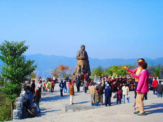坐落在1200米的千層巖左側(cè)。公園內(nèi),屹立在“云青巖”上的賀龍銅像與大自然連為一體,形成獨(dú)特的藝術(shù)風(fēng)格。這是我國近百年塑造的最大的一尊銅像。神堂灣:神堂灣是一個神秘的天國,一座綠色的迷宮,至今無人問津。一個凹形深谷,四面是刀切般的絕壁,終日霧雨霏霏。向下層巒疊嶂,形成五級神堂,谷底深不可測,被稱作“神秘的天國”。