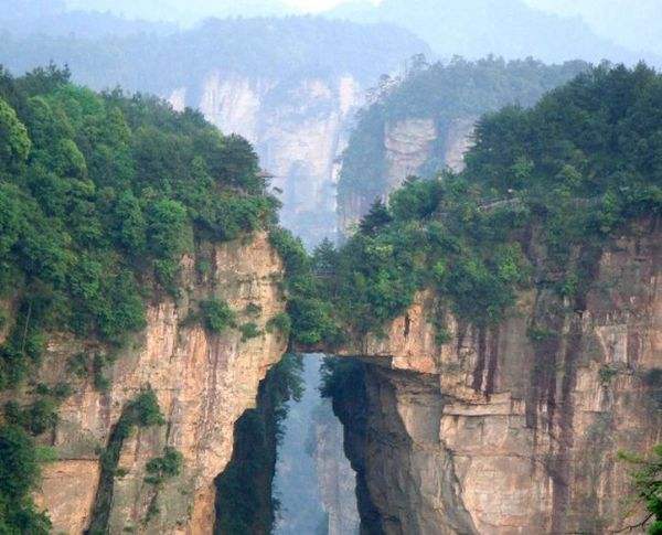 形成迄今罕見的世界奇觀――天門洞,天門洞南北對穿,門高131.5米,寬57米,深60米,拔地依天,宛若一道通天的門戶,從此而得名天門山,至今已有1754年歷史。山頂相對平坦,保存著完整的原始次森林,有著很多極為珍貴和獨(dú)特的植物品種,森林覆蓋率達(dá)90%。其間古樹參天,藤蔓纏繞,青苔遍布,石筍、石芽舉步皆是,處處如天成的盆景,被世人譽(yù)為世界最美的空中花園和天界仙境。2012年7月22日中午,法國輪滑大師讓伊夫·布朗杜挑戰(zhàn)天門山。
