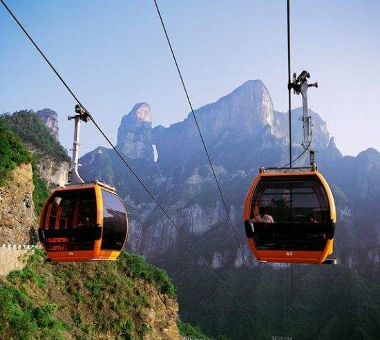 百龍?zhí)焯,垂直高?35米,運(yùn)行高度326米,由154米山體內(nèi)堅井和172米貼山鋼結(jié)構(gòu)井架等組成,采用三臺雙層全暴露觀光電梯并列分體運(yùn)行,每臺次載客50人次,運(yùn)行速度3米/秒,三臺同時運(yùn)行每小時往返量達(dá)4000人次。百龍?zhí)焯莸男藿▽崿F(xiàn)“山上游,山下住”的目標(biāo),提供了交通保障,將袁家界天下第一橋、迷魂臺、天懸白練以及烏龍寨、楊家界等絕世美景從幕后推向了前臺,并將天子山、袁家界、金鞭溪等精品旅游線路連為一體,解決了多年困擾景區(qū)的交通瓶頸問題。