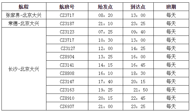 南航冬春換季后還全面優(yōu)化了各地往返北京大興的航線網(wǎng)絡(luò)。其中,張家界至北京大興航班為每天一班的朝發(fā)夕歸航班,去程CZ3717(張家界-大興)航班08:20張家界出港,回程CZ3164(大興-張家界)航班17:50北京大興起飛,時(shí)刻非常方便出行,張家界始發(fā)至大興單程僅450元起(不含稅)。常德每天往返北京大興1班;長(zhǎng)沙每天往返大興10班(2班為寬體機(jī)),均提供“精品航線”服務(wù)。此外,北京大興往返廣州、深圳、上海、長(zhǎng)沙、貴陽(yáng)、珠海、海口、三亞、哈爾濱、大連、杭州、重慶、西安、烏魯木齊等全國(guó)主要城市均為早中晚全天候航班布局,方便旅客航空出行和中轉(zhuǎn)銜接。