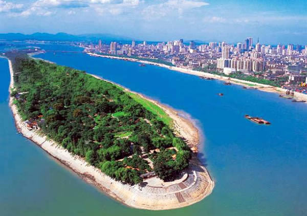 【橘子洲】:位于湘江長沙段江心,是世界上最大的內(nèi)陸洲,橘子洲介名山城市間,浮裊裊凌波上,被譽為“中國第一洲”,橘子洲以成片桔園為綠化主體,雜檀名貴花木,風(fēng)景秀麗,環(huán)境清幽,融綠化、美化、香化、凈化為一體,觀山、觀水、觀桔、觀花各有千秋。