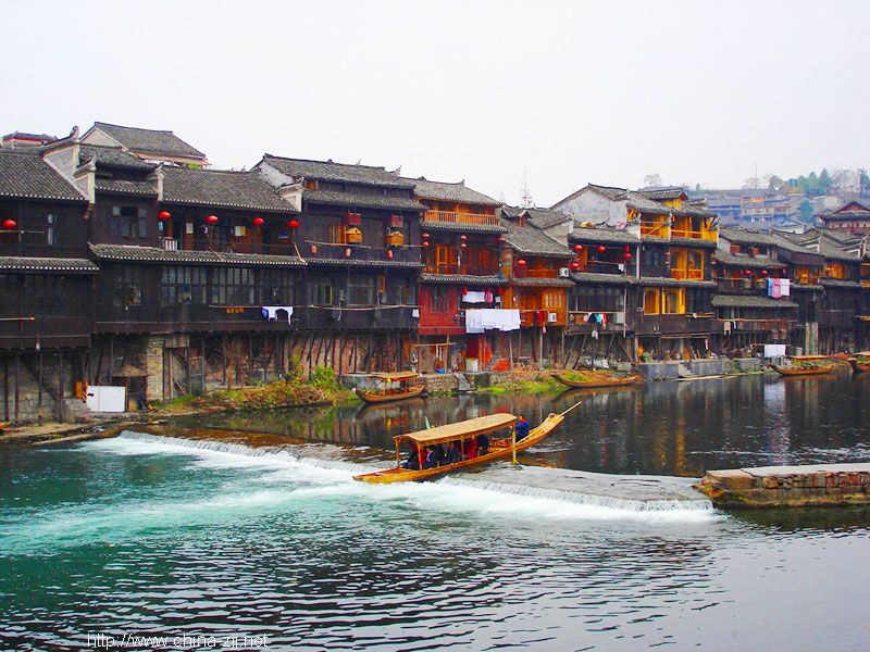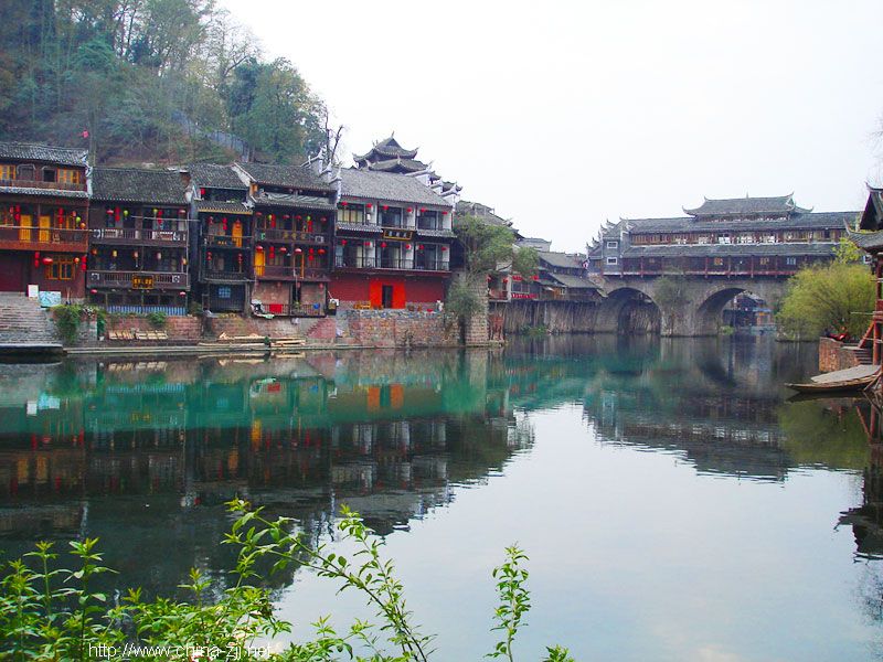 【鳳凰古城位于沱江之畔、群山環(huán)抱、關(guān)隘雄奇、碧綠的沱江依著城墻緩緩流淌,疊翠的南華山麓倒映江中,江中漁舟游船數(shù)點(diǎn),山間暮鼓晨鐘兼鳴,懸崖上的吊腳樓輕煙裊裊,碼頭邊的浣紗姑笑聲朗朗,兩岸已有數(shù)百年歷史的吊腳樓更是別有一番風(fēng)味;順?biāo)麓┻^虹橋一幅江南水鄉(xiāng)的畫面便展現(xiàn)于眼前--萬壽宮、萬名塔、奪翠樓……一種遠(yuǎn)離塵世的感覺悠然而生;鳳凰--猶如“一幅濃墨淺彩的中國(guó)山水畫”】(游覽時(shí)間約3小時(shí)左右)